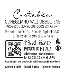 Vino spumante dal bouquet di profumi intensi ed avvolgenti. É il Conegliano Valdobbiadene Prosecco DOCG nella sua veste più amabile, perfetto per un brindisi o semplicemente da degustare in ogni momento della giornata.